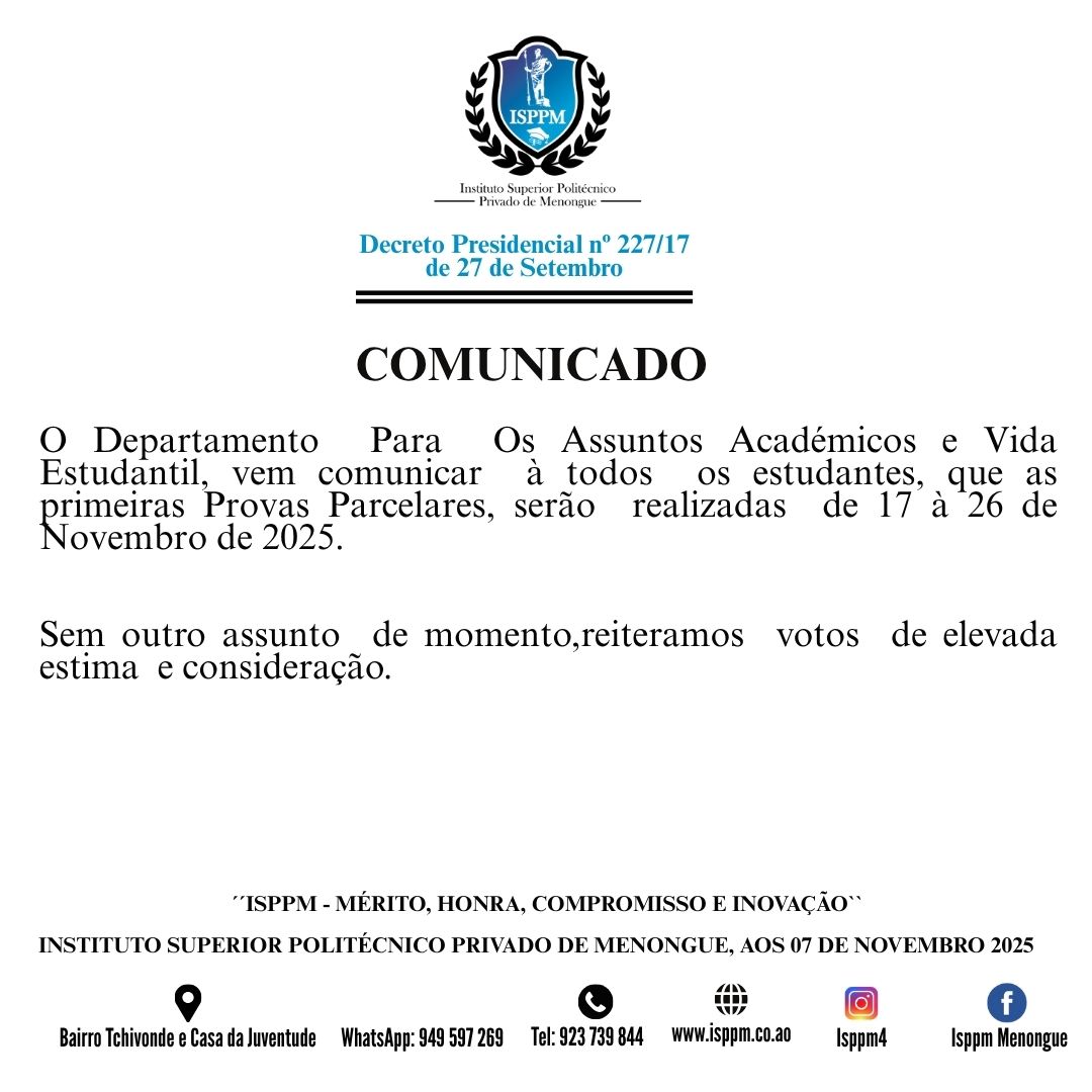 By Luzia Gaspar LuziaPosted on 7 de Novembro, 2025Posted in Sem categoriaNo Comments on COMUNICADO SOBRE AS PRIMEIRAS PROVAS PARCELARES. COMUNICADO SOBRE AS PRIMEIRAS PROVAS PARCELARES. Navegação de artigos 𝐎 𝐈𝐒𝐏𝐏𝐌 𝐚𝐜𝐫𝐞𝐝𝐢𝐭𝐚 𝐪𝐮𝐞 𝐨 𝐜𝐨𝐧𝐡𝐞𝐜𝐢𝐦𝐞𝐧𝐭𝐨 𝐩𝐨𝐝𝐞 𝐜𝐮𝐫𝐚𝐫,𝐢𝐧𝐬𝐩𝐢𝐫𝐚𝐫 𝐞 𝐝𝐞𝐬𝐩𝐞𝐫𝐭𝐚𝐫 𝐂𝐨𝐧𝐬𝐜𝐢ê𝐧𝐜𝐢𝐚𝐬.𝐍𝐞𝐬𝐭𝐞 𝐌ê𝐬 𝐝𝐞 𝐍𝐨𝐯𝐞𝐦𝐛𝐫𝐨, 𝐚 𝐜𝐨𝐫 𝐚𝐳𝐮𝐥 𝐠𝐚𝐧𝐡𝐚 𝐧𝐨𝐯𝐨 𝐬𝐢𝐠𝐧𝐢𝐟𝐢𝐜𝐚𝐝𝐨 𝐝𝐚 𝐕𝐢𝐝𝐚. Deixe uma resposta Cancelar respostaO seu endereço de email não será publicado. Campos obrigatórios marcados com *Comentário * Nome * Email * Site Guardar o meu nome, email e site neste navegador para a próxima vez que eu comentar.